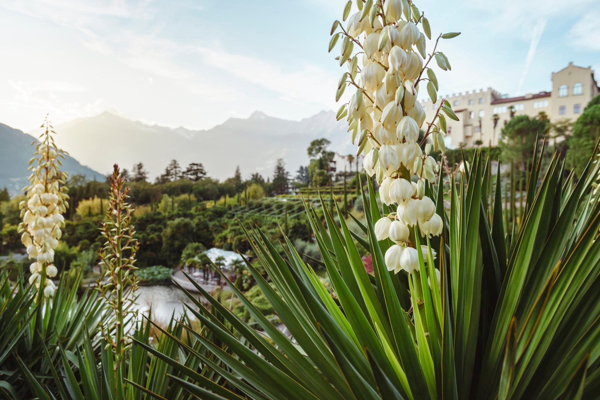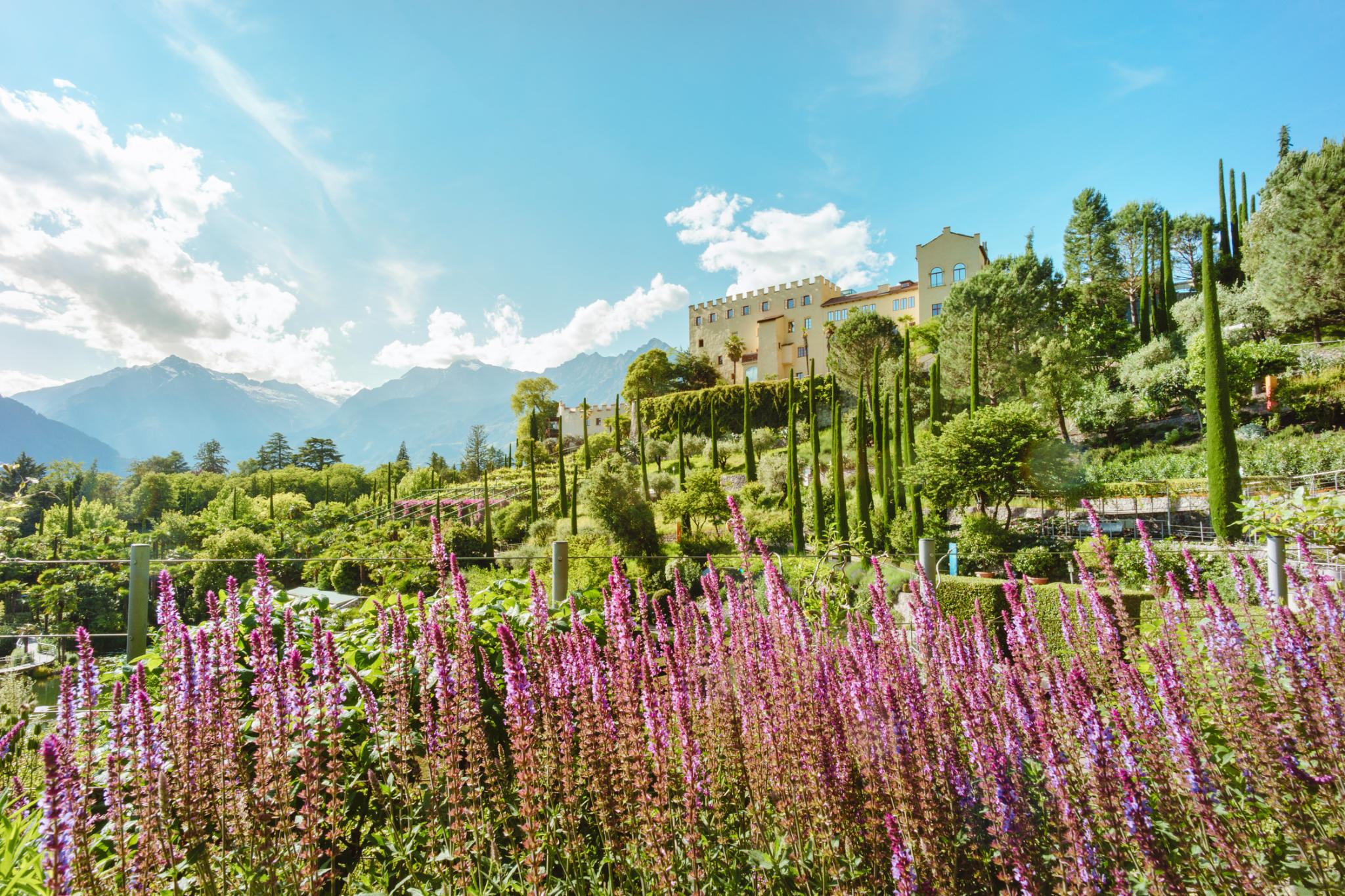 Die Gärten von Schloss Trauttmansdorff in Meran erstrecken sich auf einer Fläche von 12 Hektar in Form eines natürlichen Amphitheaters über einen Höhenunterschied von 100 Metern. Das eröffnet beeindruckende Perspektiven auf exotische Gartenlandschaften sowie atemberaubende Ausblicke auf die umliegende Bergwelt und die Kurstadt Meran. In über 80 Gartenlandschaften blühen und gedeihen verschiedenste Pflanzen aus aller Welt. Egal ob Jung oder Alt, Botanikexperte oder Laie, die Gärten von Schloss Trauttmansdorff sind ein einzigartiger Mix aus botanischem Garten und Freizeitattraktion.